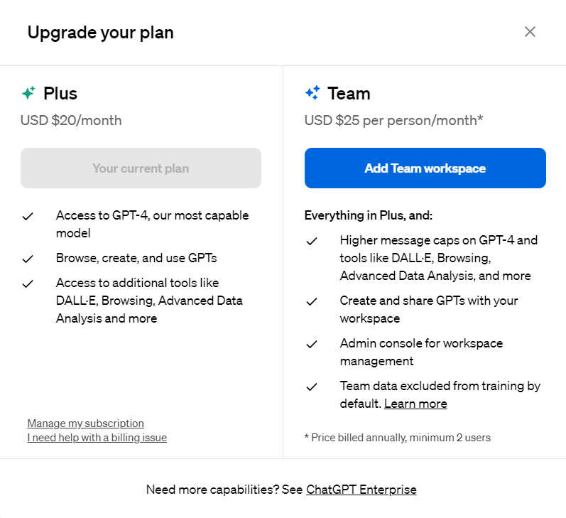 The membership prices for ChatGPT are as follows.